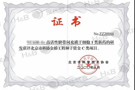 汉氏联合提交的高活性脐带间充质干细胞1类新药的研发项目荣获金桥工程种子资金。