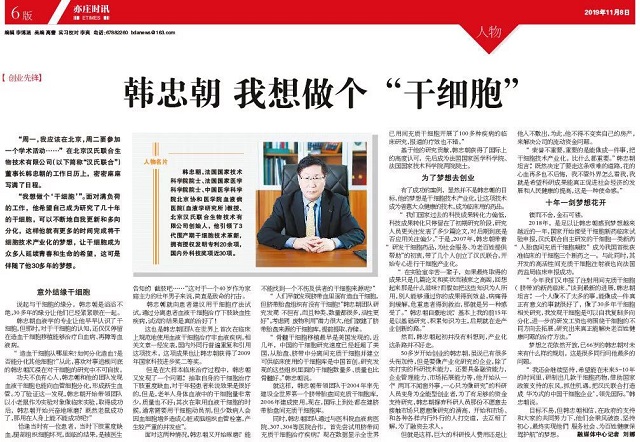 韩忠朝,法国国家技术科学院院士、法国国家医学科学院院士、中国医学科学院北京协和医学院血液病医院(血液学研究所)教授、北京汉氏联合生物技术股份有限公司创始人,他引领了3代围产期干细胞技术革新,拥有授权发明专利20余项,国内外科技奖项近30项。