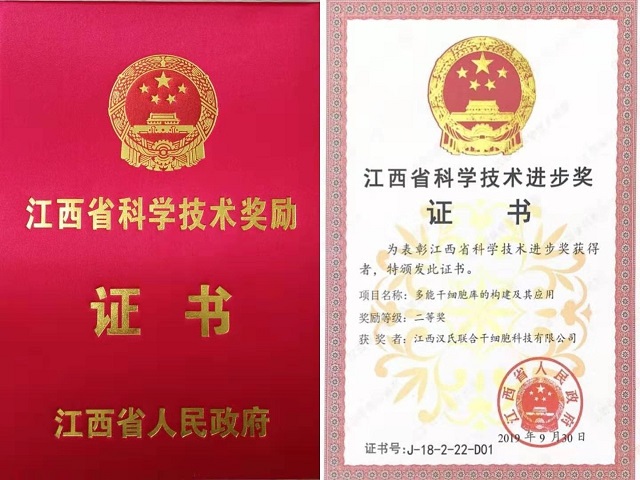 江西汉氏联合干细胞科技有限公司申报的《多能干细胞库的构建及其应用》项目荣获江西省科学技术进步奖二等奖!