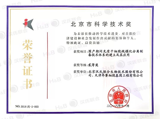 汉氏联合开创的干细胞制备工艺体系荣获2018年北京市科学技术发明二等奖