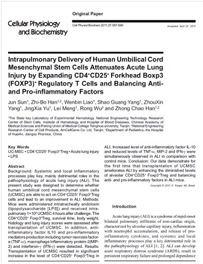 汉氏联合成果专栏16: 探索干细胞对呼吸系统疾病的治疗作用