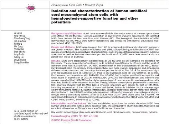 汉氏联合研发团队在首席科学家韩忠朝院士的带领下,开创了一种从脐带中高效分离间充质干细胞的技术