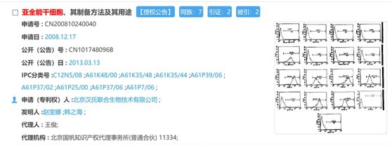 汉氏联合集团早在2008年就已经申请了亚全能干细胞专利,引领了相关技术领域的发展。