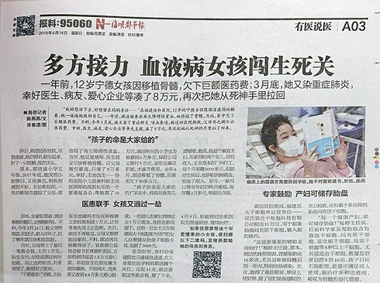 血液病女孩闯生死关,胎盘干细胞带来治疗希望
