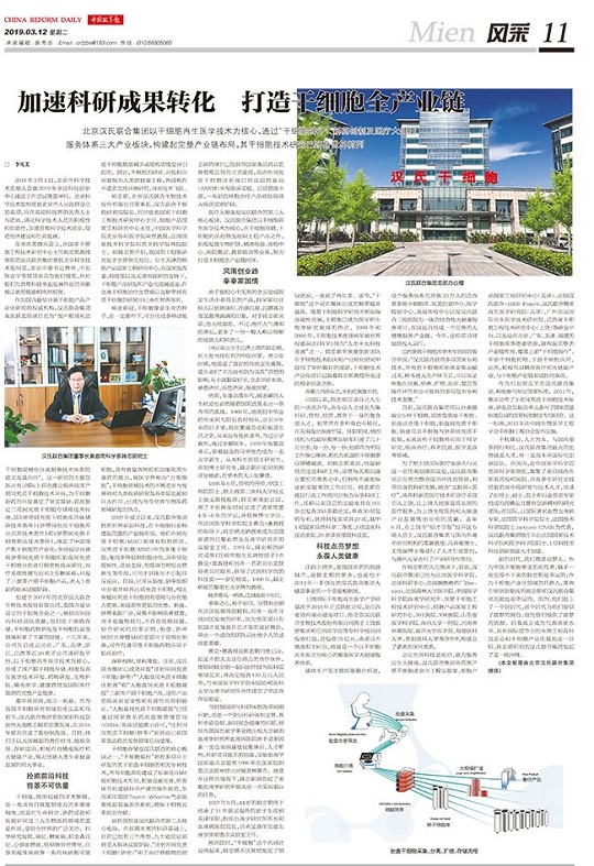 【中国改革报】加速科研成果转化 打造干细胞全产业链—汉氏联合