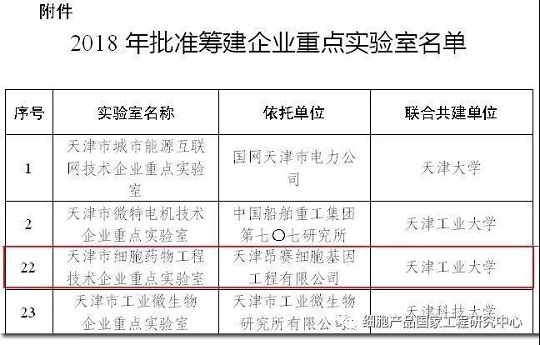 天津市科技局公布了“2018年批准筹建企业重点实验室名单”,汉氏联合集团子公司天津昂赛细胞基因工程有限公司凭借坚实的科研技术能力获此殊荣。