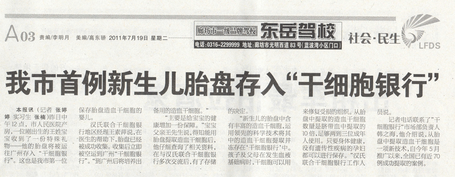胎盘造血干细胞去哪儿采集——“我省首例胎盘造血干细胞”后续