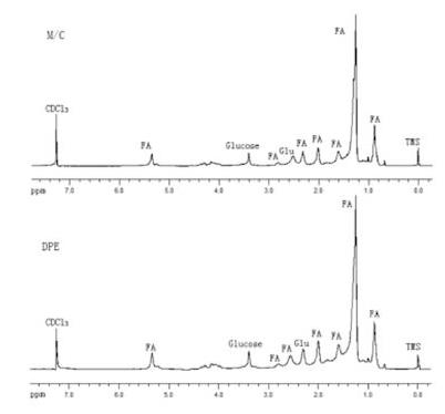 人间充质干细胞的水溶性代谢产物特点已经被了解,但是其脂肪性代谢产物的并不清楚。汕头大学医学院的戴海英和同事利用甲醇—氯仿和高氯酸分别提取脂溶性代谢产物和水溶性代谢产物。甲醇-氯仿和水双向提取法同时提取水相和油相(脂肪相)。研究人员证实可溶性代谢产物谱对反应细胞浆和细胞