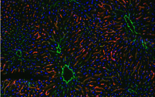 来源:生物谷实验小鼠肝脏标本:干细胞就在中央静脉(红色)周围,绿色是干细胞分化的细胞Nature杂志最新在线的一篇研究中,HowardHughes医学研究所(HHMI)的科学家确定了能够分化为功能性肝细胞的干细胞。这项研究解开了关于肝脏不断新生的细胞到底从何而来的老谜团。研究的通