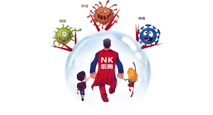 免疫细胞是人体内一类白细胞的总称,这些细胞具有杀伤肿瘤细胞、杀伤正常死亡细胞、清除体内代谢垃圾、吞噬入侵机体病原微生物等功能。NK细胞(自然杀伤细胞),是人体第一道免疫防线的中坚力量。NK细胞就像警察,负责在人体的血管中进行巡逻,时刻守护社会治安。