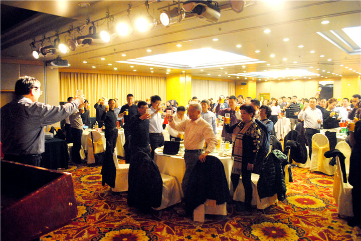 1月9日晚6点,北京锦江富园大酒店座无虚席。来自广东、河南、山东、江西、贵州、福建、云南、陕西等省市的17家子公司的代表、行业专家与汉氏联合公司总部全体员工欢聚一堂,共同欢庆汉氏联合2015年年会暨董事长韩忠朝教授63岁寿辰。值此双喜临门之际,会场内外一片喜乐祥和的节日氛围。