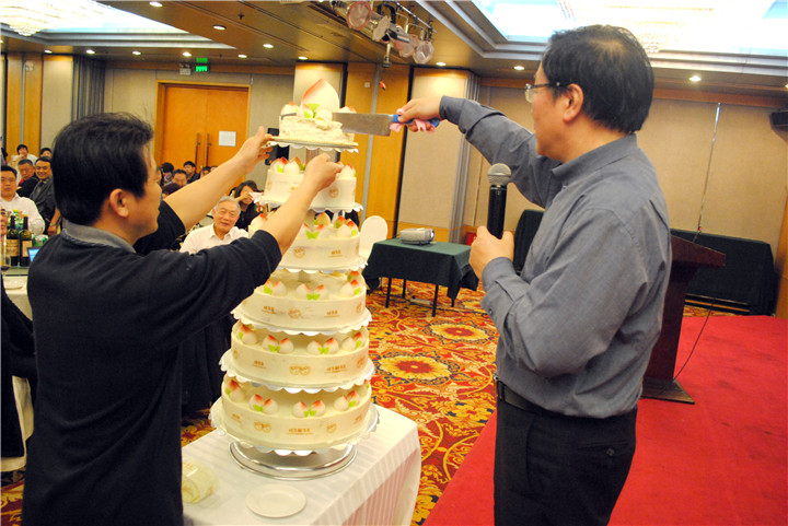 韩教授为大家切开代表着健康长寿、吉祥如意的生日蛋糕