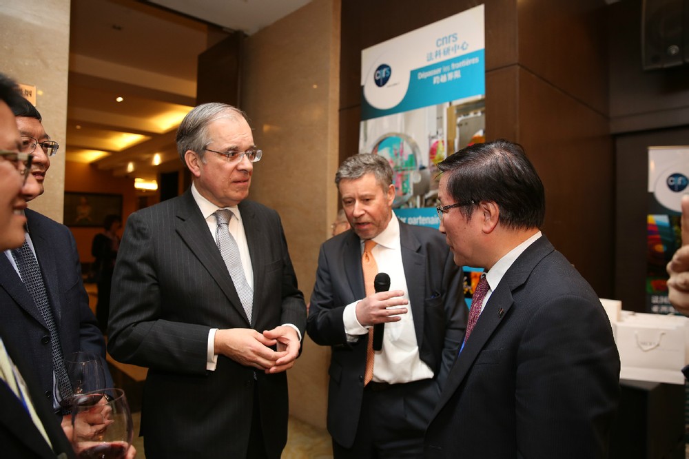 酒会于晚18时开始,法国国家科学研究中心主任Antoine Mynard和法国驻华大使Maurice Gourdault-Montagne先后致辞,对在场为中法合作积极努力的人士予以感谢,并表示随着中法近年来在多个领域的合作的步伐不断加快,希望未来中法有更广阔的合作空间。