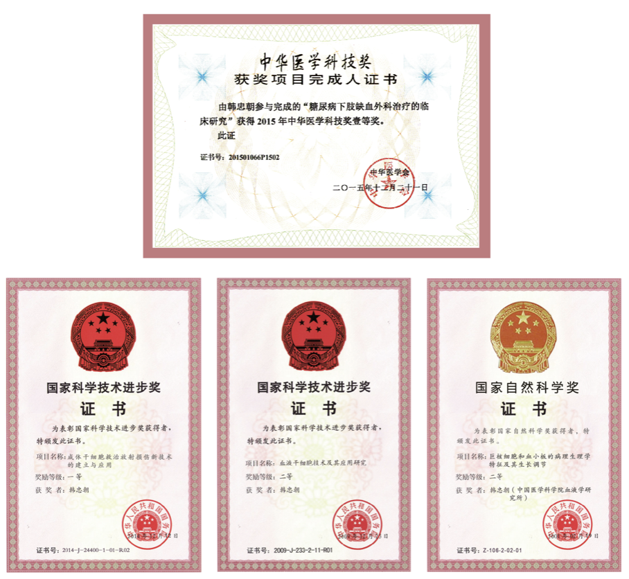 国家科技部及发改委分别在中国医学科学院血液病医院设立了“国家干细胞工程技术研究中心”和“细胞产品国家工程技术研究中心”,韩忠朝院士分别担任以上两个国家最权威的细胞研究中心的主任,表明了国家对韩忠朝教授在干细胞领域的专业水平、基础研究能力的高度肯定。