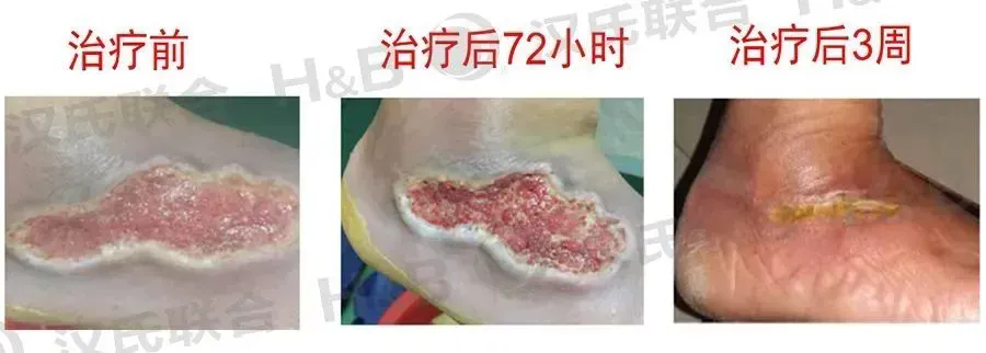 南昌大学第一附属医院首次报道临床结果在《Medicine(Baltimore)》期刊报道了汉氏联合制备的干细胞凝胶应用于糖尿病足溃疡的案例。一名57岁的2型糖尿病足女性患者经历了20多天的足溃疡,常规治疗对病症并无改善。在患者的允许下,医务团队实施了胎盘间充质干细胞水凝胶治疗。结果发现,患者足部溃疡几乎愈合,足部行走功能也得到了恢复。整个治疗过程并未观察到不良反应。
