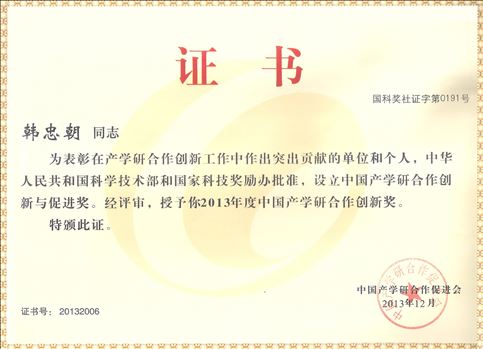 • 韩忠朝教授喜获“中国产学研合作创新与促进奖”