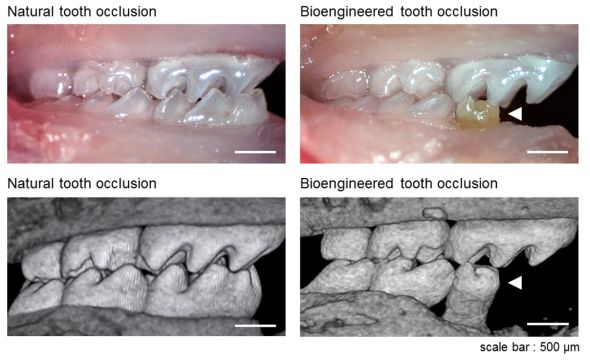 等到这些干细胞长成一个牙齿大小,研究人员便将其植入一只一个月大的小鼠口中。经过大约40天,这颗移植的牙齿便和小鼠的口腔骨骼系统和其他组织完好的愈合在一起。科学家们还能探测到这颗新牙齿内部神经系统的发育。