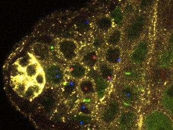 研究人员在果蝇干细胞分裂之时标记了每条染色体拷贝。利用这种方法,他们追踪了X和Y染色体拷贝移动到子生殖干细胞或成精原母细胞的趋向。他们证实,细胞可以将X和Y染色体拷贝区分开来,并显著偏倚性地将它们传递到子细胞中。