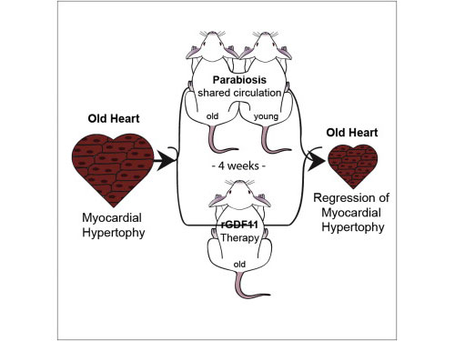 该研究的另一负责人,哈佛大学负责人 Amy Wagers 教授一直致力于联体小鼠系统的研究,该系统中的不同小鼠共享同一个血液循环系统。他们曾发现,青年小鼠血液中的循环因子,对老年小鼠的多种组织有修复作 用,特别是脊髓和肌肉组织。为了明确在衰老过程中,引发心肌肥厚的生物学机制,研究人员利用联体小鼠系统,分析了循环因子对心脏的影响。