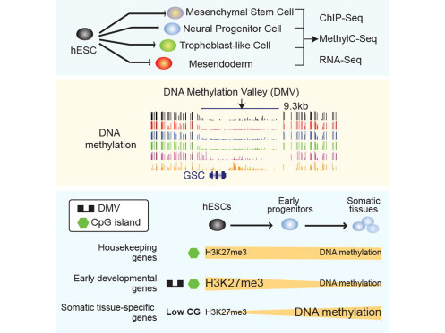 目前的研究将结束这一观念。研究人员发现,在分析整个基因组的这些修饰,即表观遗传组时,调节早期胚胎发育的主控基因往往由组蛋白甲基化H3K27me3关闭。同时,细胞分化的最后阶段主要由DNA甲基化来精心安排,使细胞变得越来越专注于特定的功能。