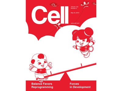 近日,北京大学邓宏魁研究组和汤超研究组合作,首次证明小鼠体细胞重编程可由调控分化的基因完成,并在此基础上提出细胞命运转变的“跷跷板模型”。2013 年5月23日,该成果研究论文“Induction of pluripotency in mouse somatic cells with lineage specifiers”于《细胞》(Cell)期刊以封面文章形式在线发表。《细胞》同期还配发了希伯来大学 Nissim Benvenisty 教授对于该工作的评论文章。