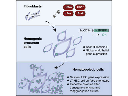 Carlos-Filipe Pereira, Betty Chang, Jiajing Qiu, Xiaohong Niu, Dmitri Papatsenko, Caroline E. Hendry, Neil R. Clark, Aya Nomura-Kitabayashi, Jason C. Kovacic, Avi Ma'ayan, Christoph Schaniel, Ihor R. Lemischka, Kateri Moore. Induction of a Hemogenic Program in Mouse Fibroblasts. Cell Stem Cell, 13 June 2013; DOI:10.1016/j.stem.2013.05.024